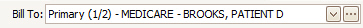 The ‘Bill To’ dropdown reflects the payers associated with the patient record. The text of the selected ‘Bill To’ will contain information, ex: (1/2), to indicate Primary and/or Secondary payers associated with the claim.