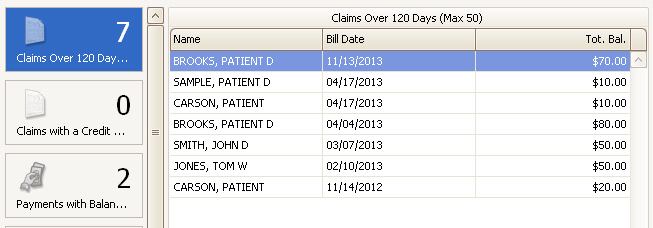 Use the following tabs for quick access to Patient, Claims, Reports and Tasks.
