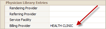 The ‘Physician/Facility Library’ is used to maintain a list of Providers and Facilities used in patient and claim records. See Physician, Facility Library for additional information on setting up the Physician Library.